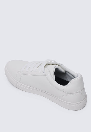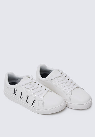 Elle Comfy Fit Footbed Microfiber Leather Sneakers In White