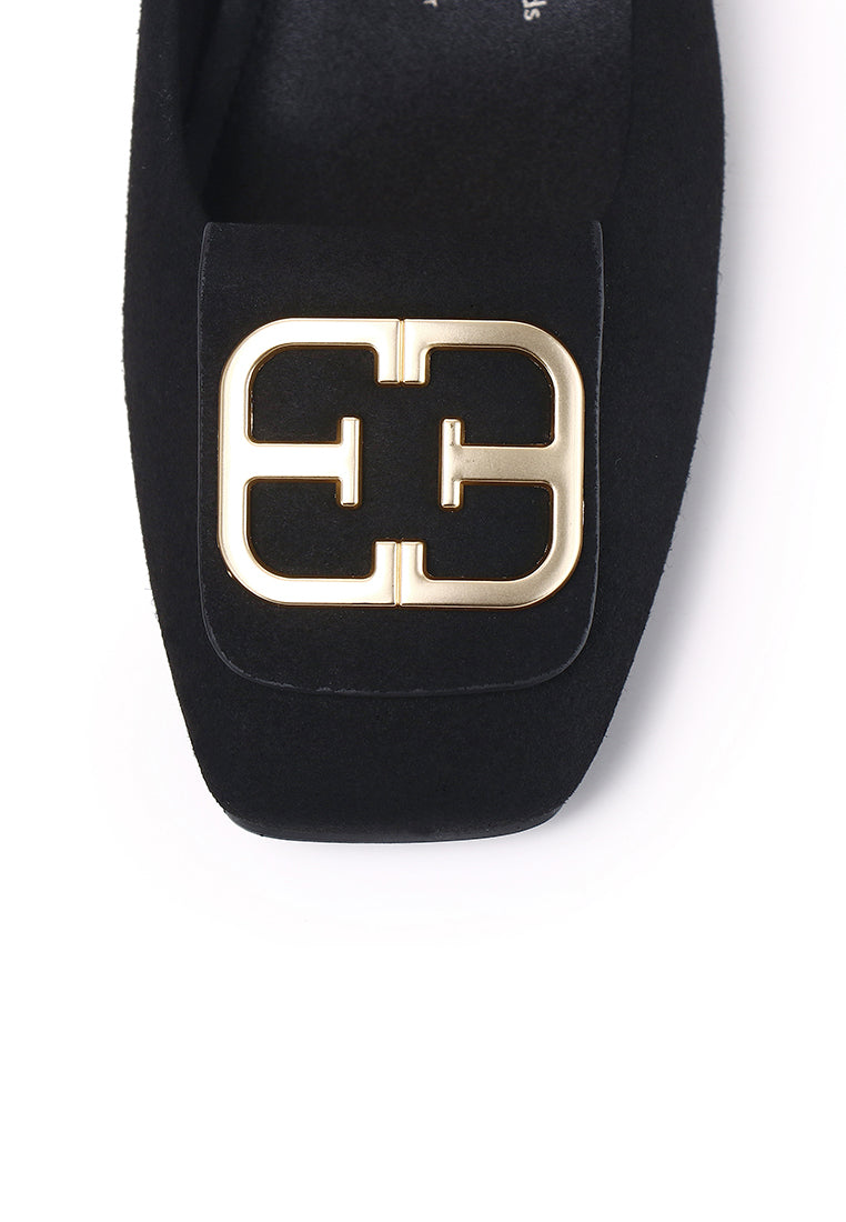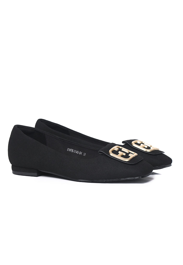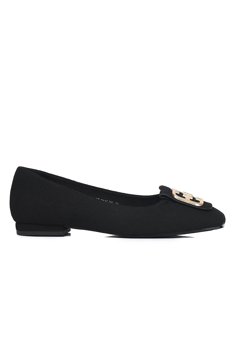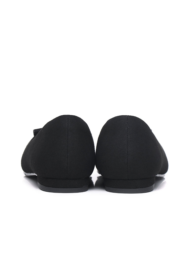 Sandra Faux Suede Comfy Fit Footbed Microfiber Leather Flats & Ballerina In Black