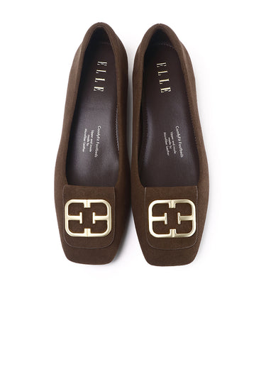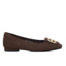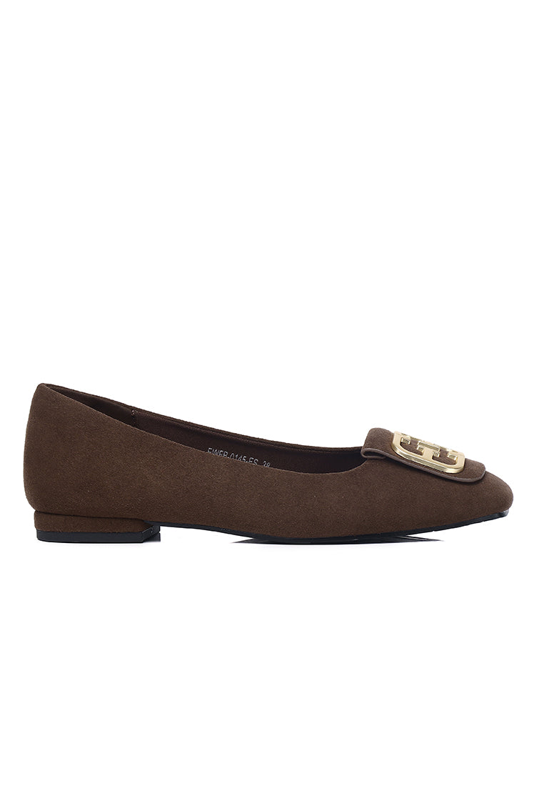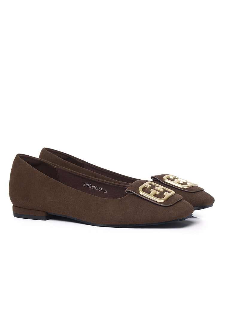Sandra Faux Suede Comfy Fit Footbed Microfiber Leather Flats & Ballerina In Espresso