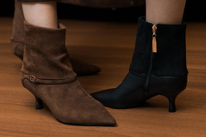 Glamour Comfy Fit Footbed Microfiber Leather Heels In Black