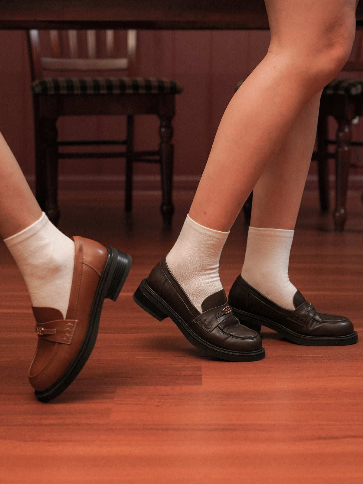 Sabine Comfy Fit Footbed Microfiber Leather Loafers In Brown
