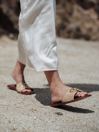 Leandra Comfy Fit Footbed Microfiber Leather Sandals In Beige