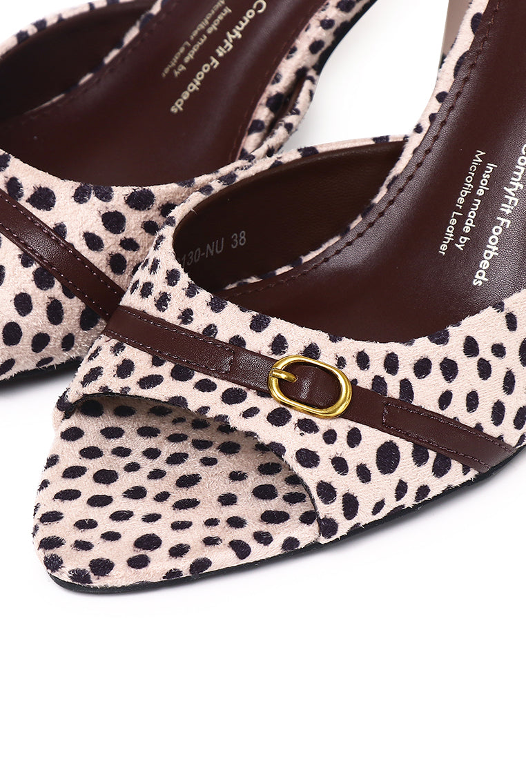Belle Cheetah-Print Comfy Fit Footbed Microfiber Leather Heels In Nude