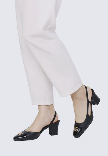 Charlene Comfy Fit Footbed Microfiber Leather Heels In Black