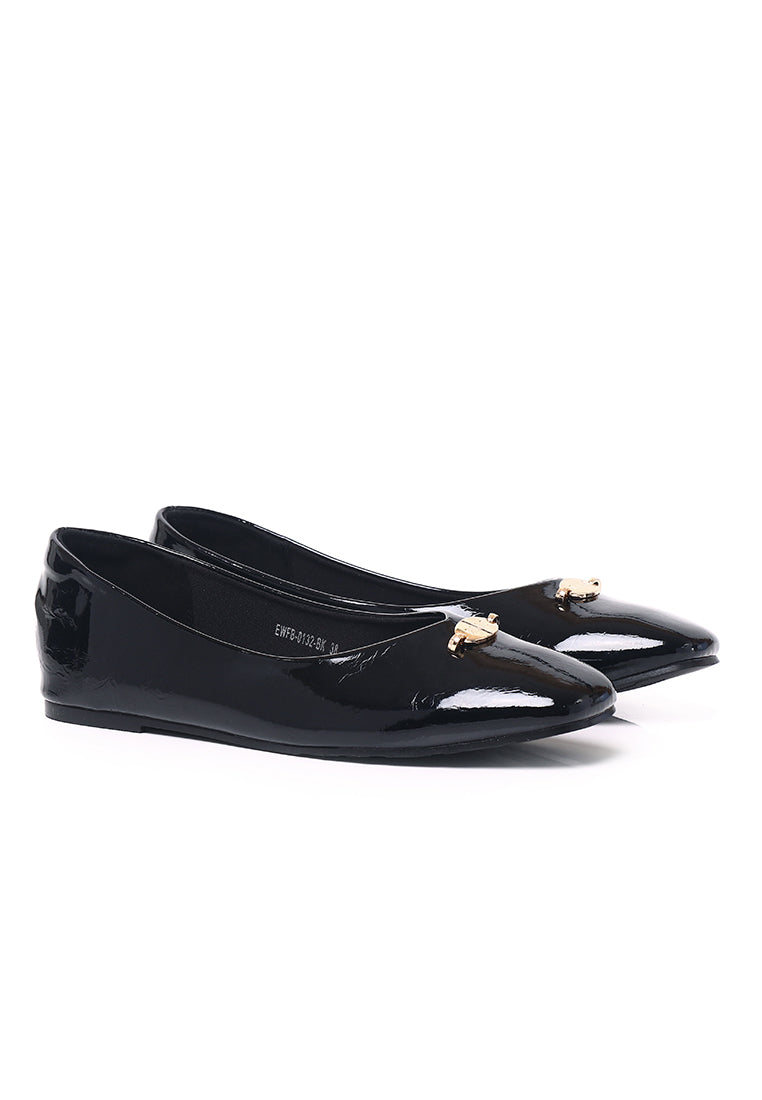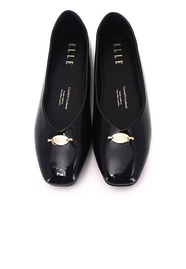 Cindy Patent Comfy Fit Footbed Microfiber Leather Flats & Ballerina In Black