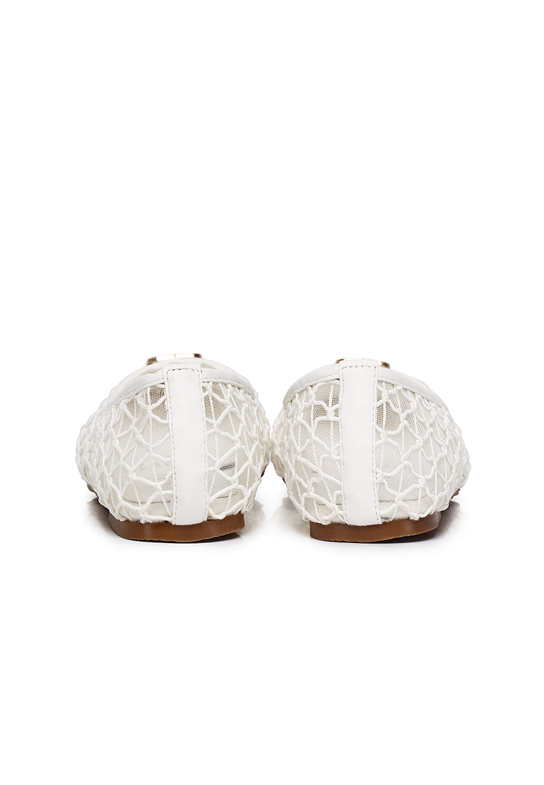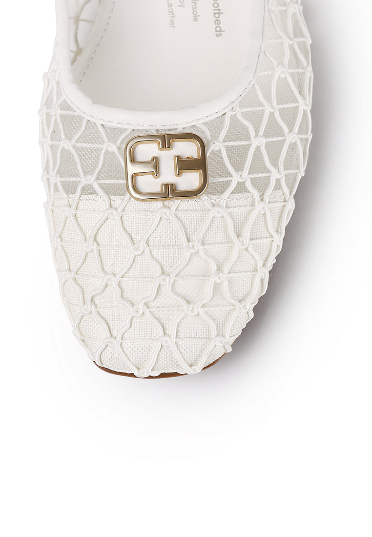 Loom Woven Comfy Fit Footbed Microfiber Leather Flats & Ballerina In Beige
