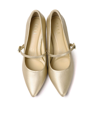 Molly Comfy Fit Footbed Microfiber Leather Heels In Gold