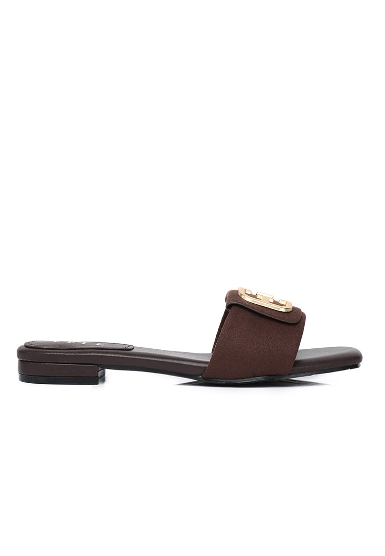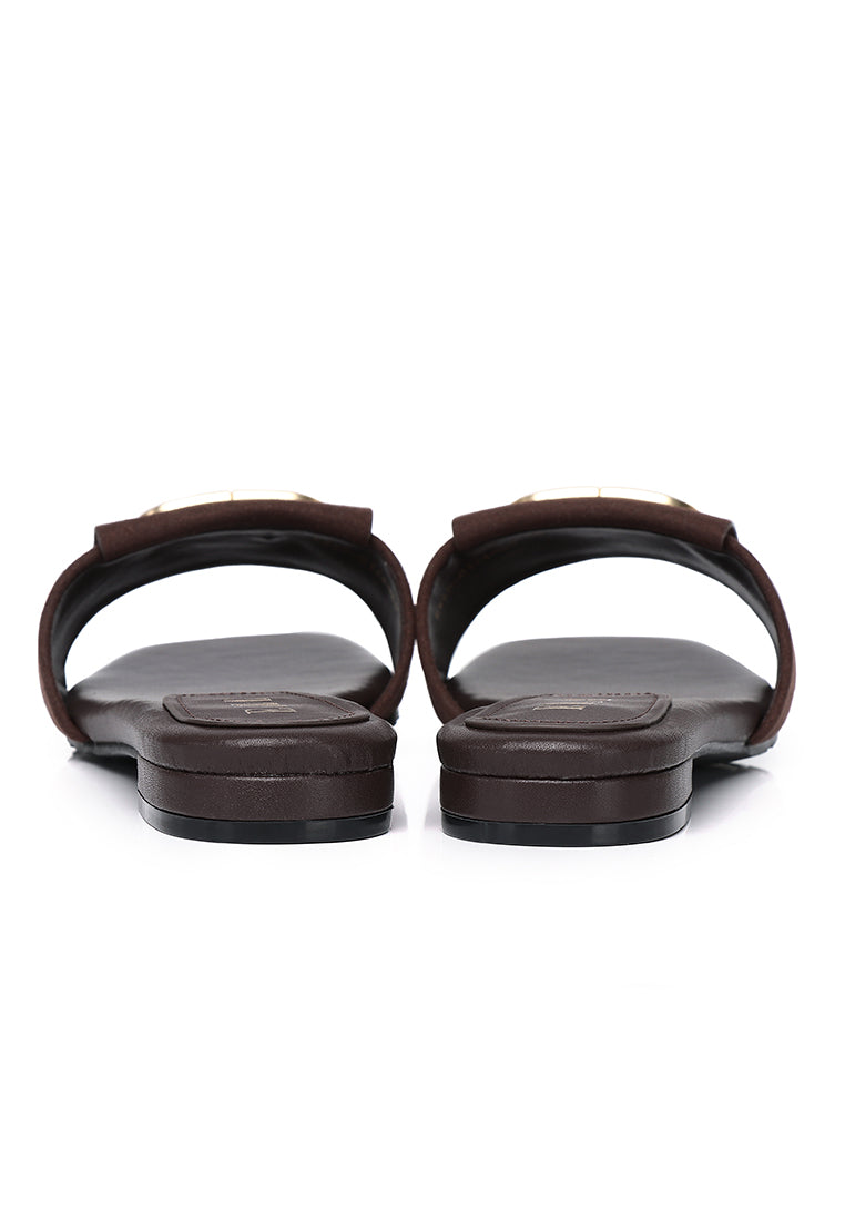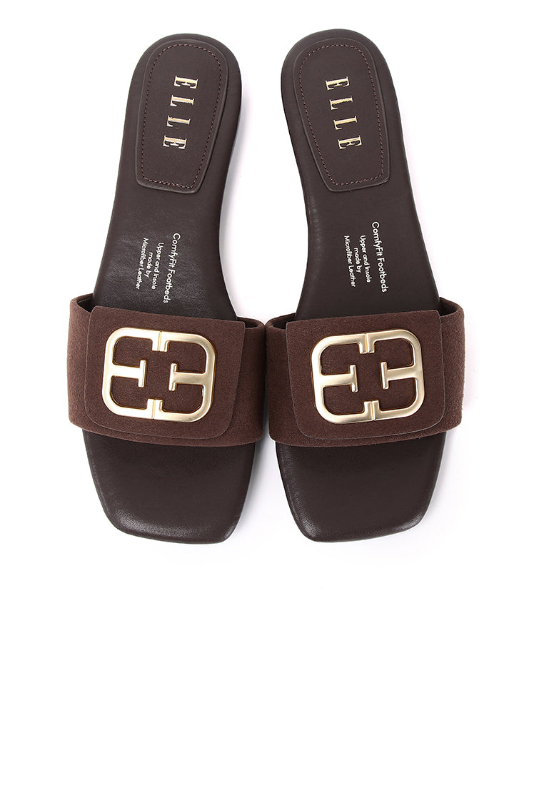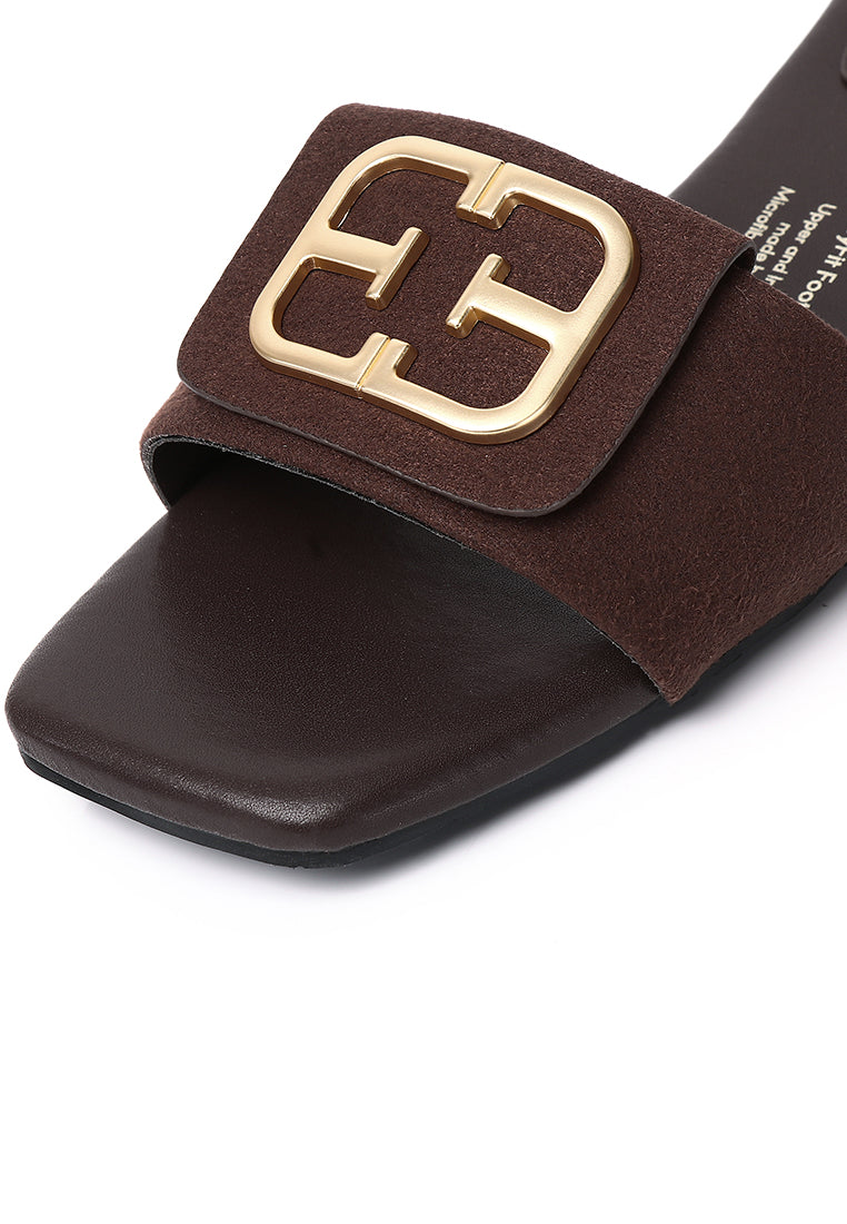 Stella Faux Suede Comfy Fit Footbed Microfiber Leather Sandals In Espresso
