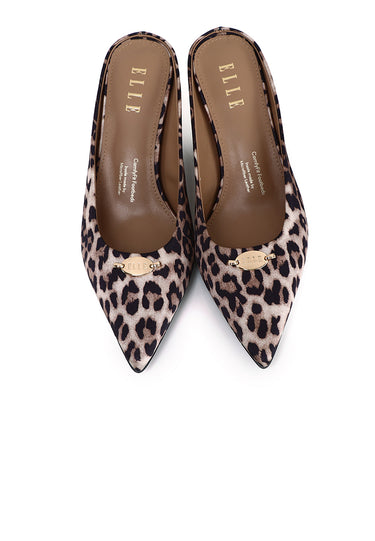 Tyla Leopard-Print Comfy Fit Footbed Microfiber Leather Heels In Coffee